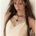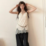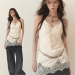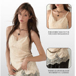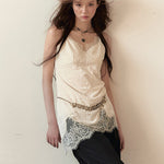 VIA PITTI 2410 蕾丝拼接中长款吊带背心 米杏