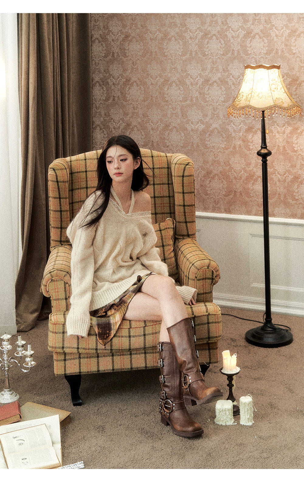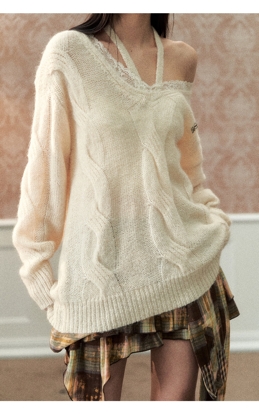 VIA PITTI 2410 重丝绞花挂脖毛衣 米杏