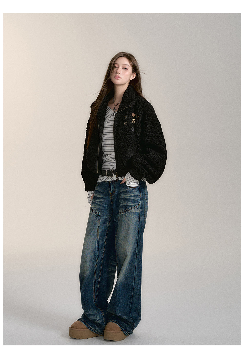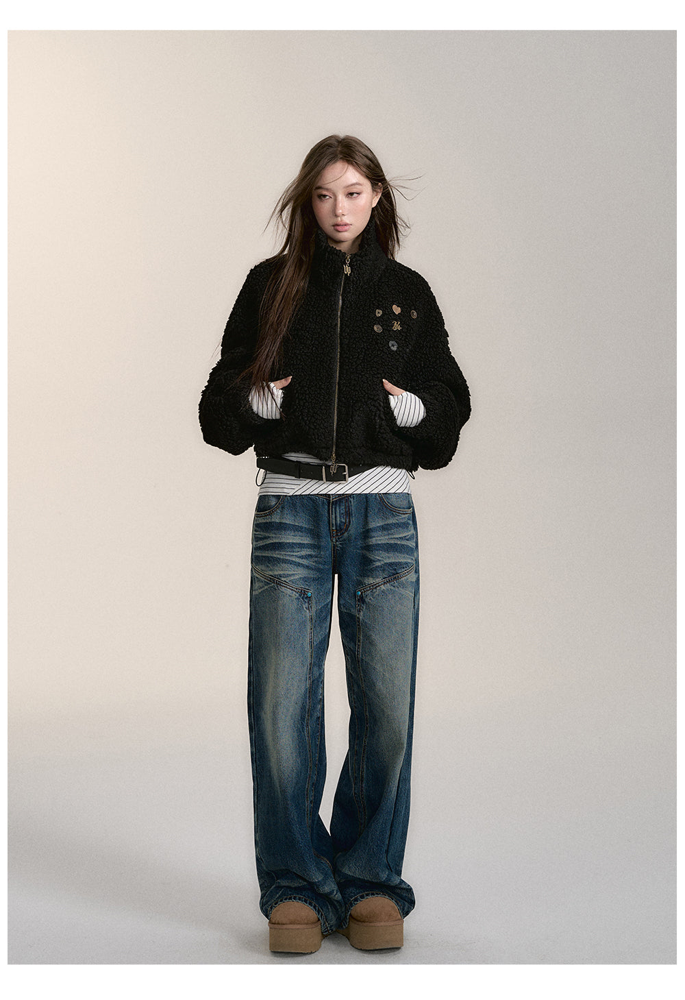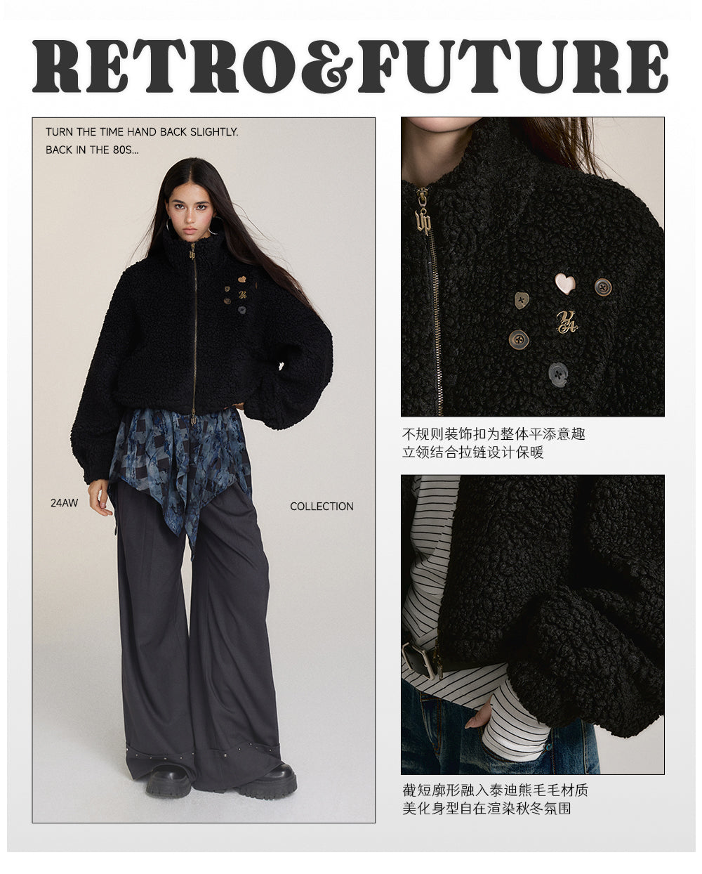 VIA PITTI 2412 摇粒绒抽绳短款外套 黑