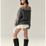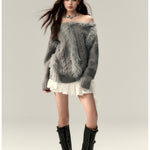 VIA PITTI 2502 一字肩设计感羊毛针织上衣 灰