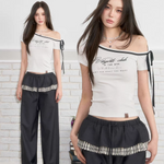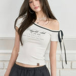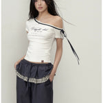 VIA PITTI 2505 系带斜肩字母印花短袖