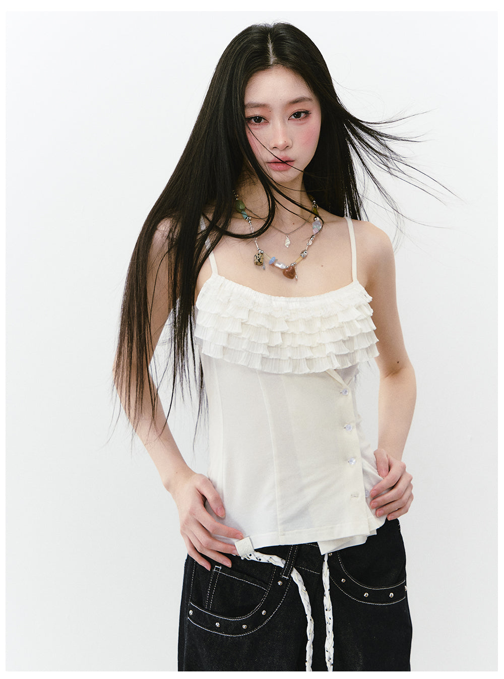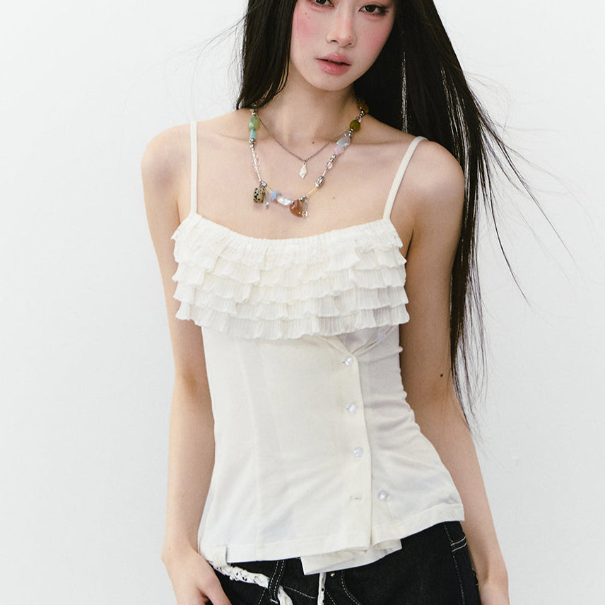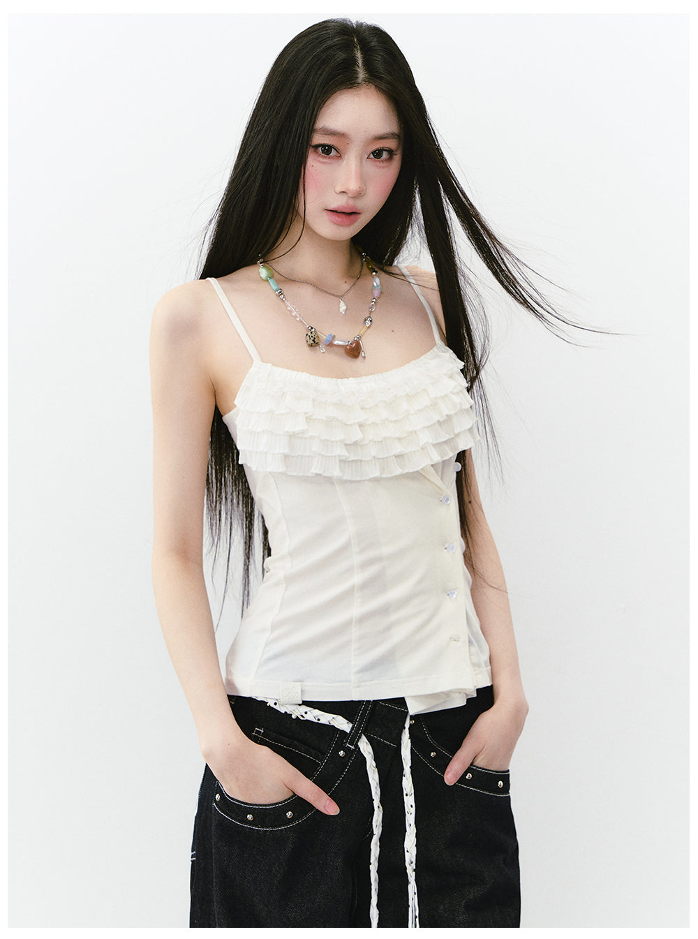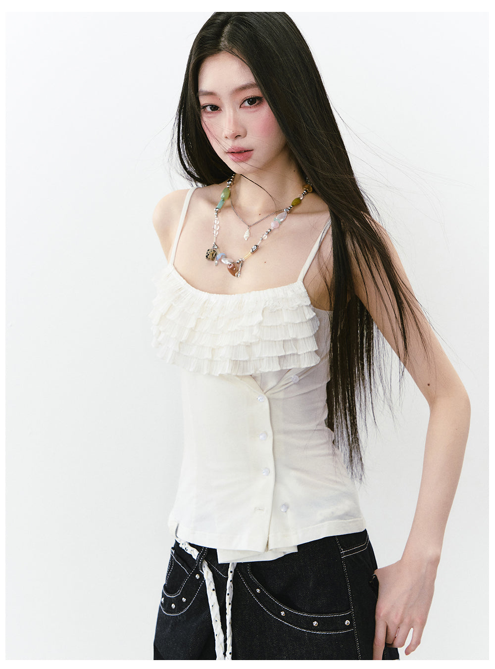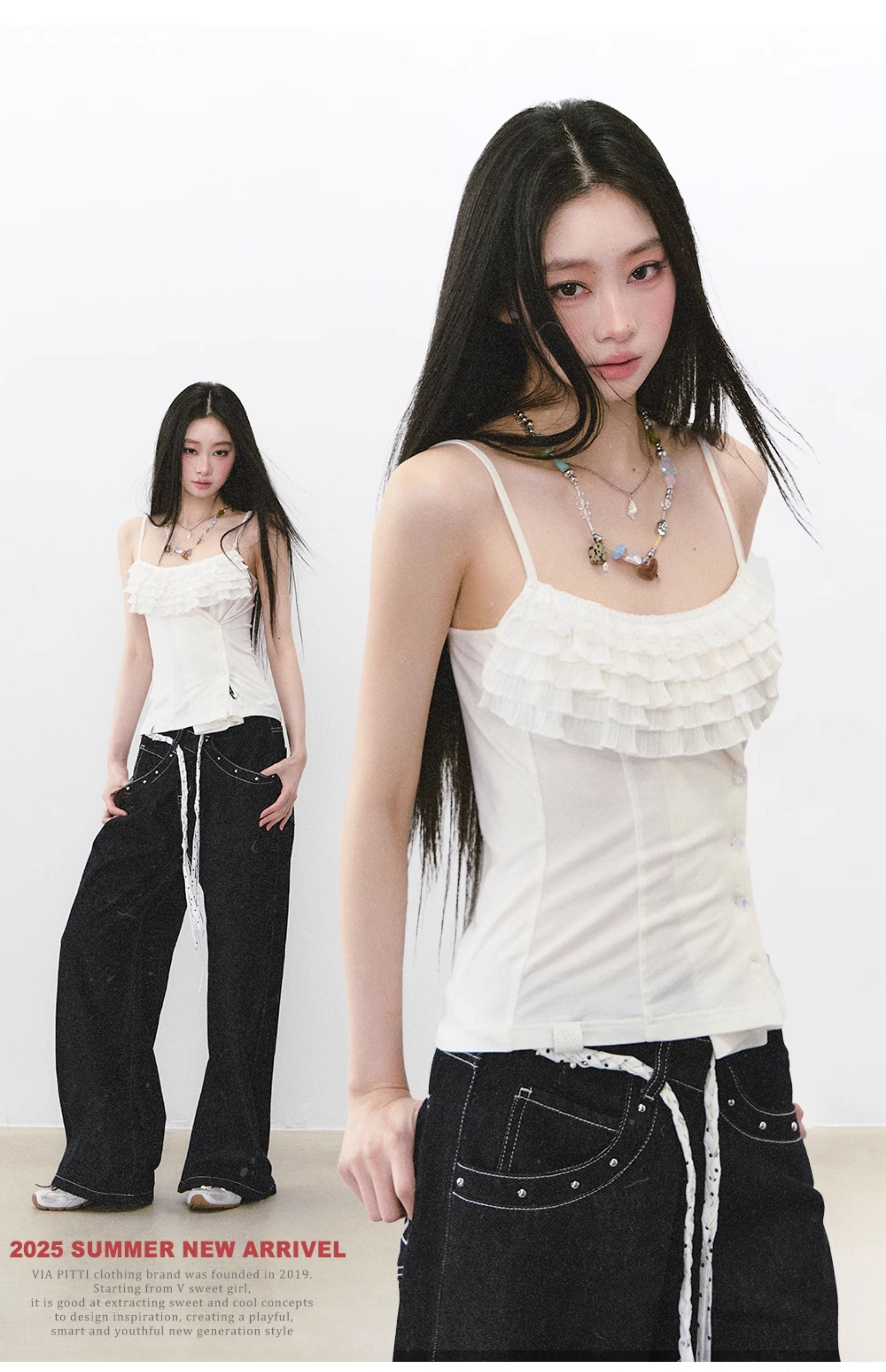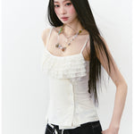 VIA PITTI 2506 多层次花边可调节吊带 白