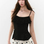 VIA PITTI 2506 多层次花边可调节吊带 黑