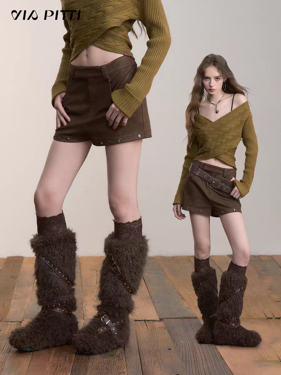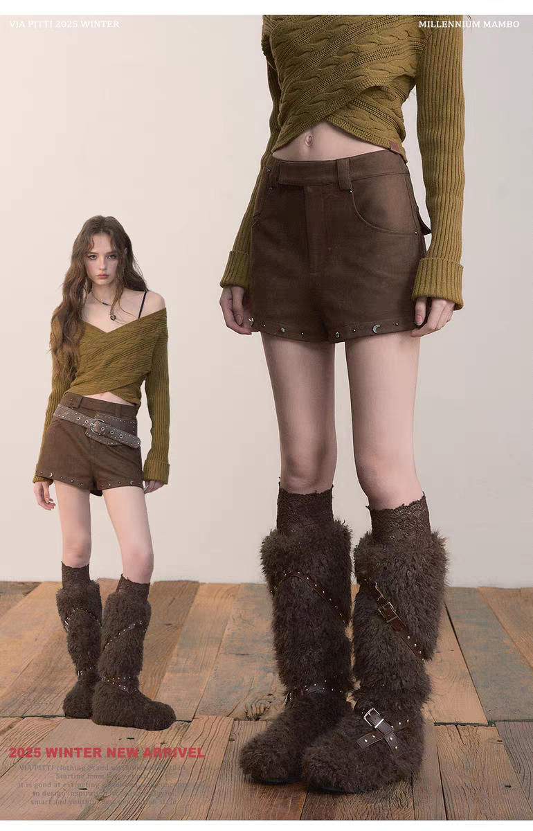 VIA PITTI 2512 不规则铆钉百搭短裤