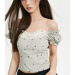VIA PITTI SS2306 挂脖褶皱泡泡袖衬衫上衣