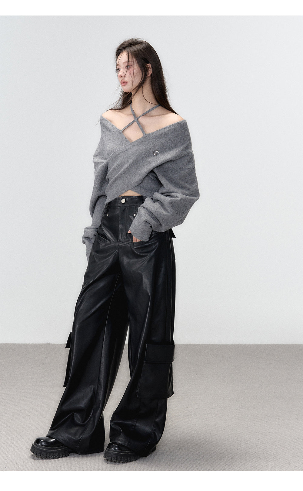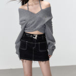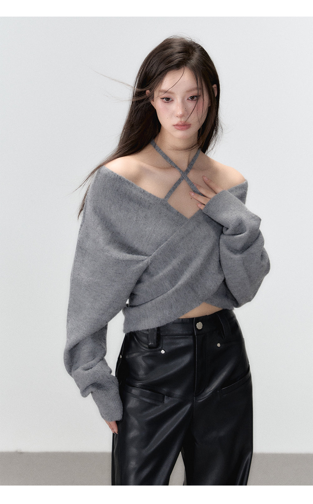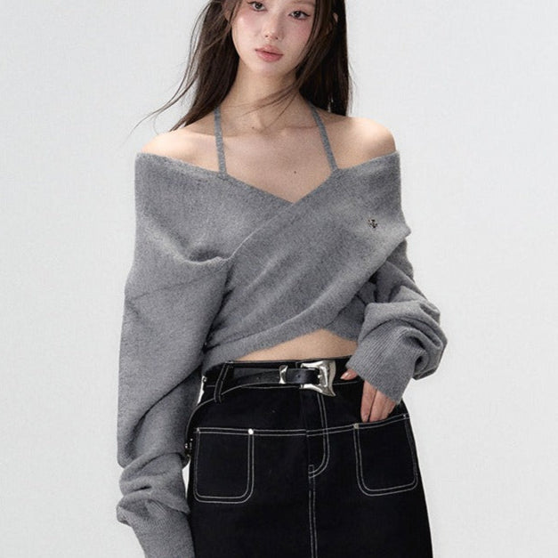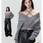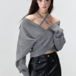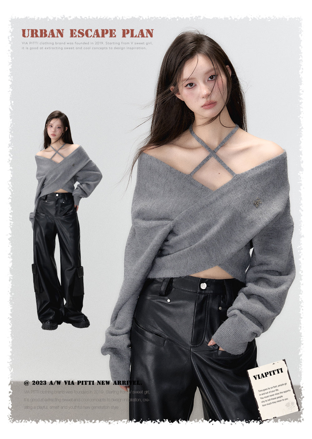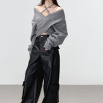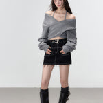VIA PITTI SS2311 一字肩设计感针织衫毛衣 灰