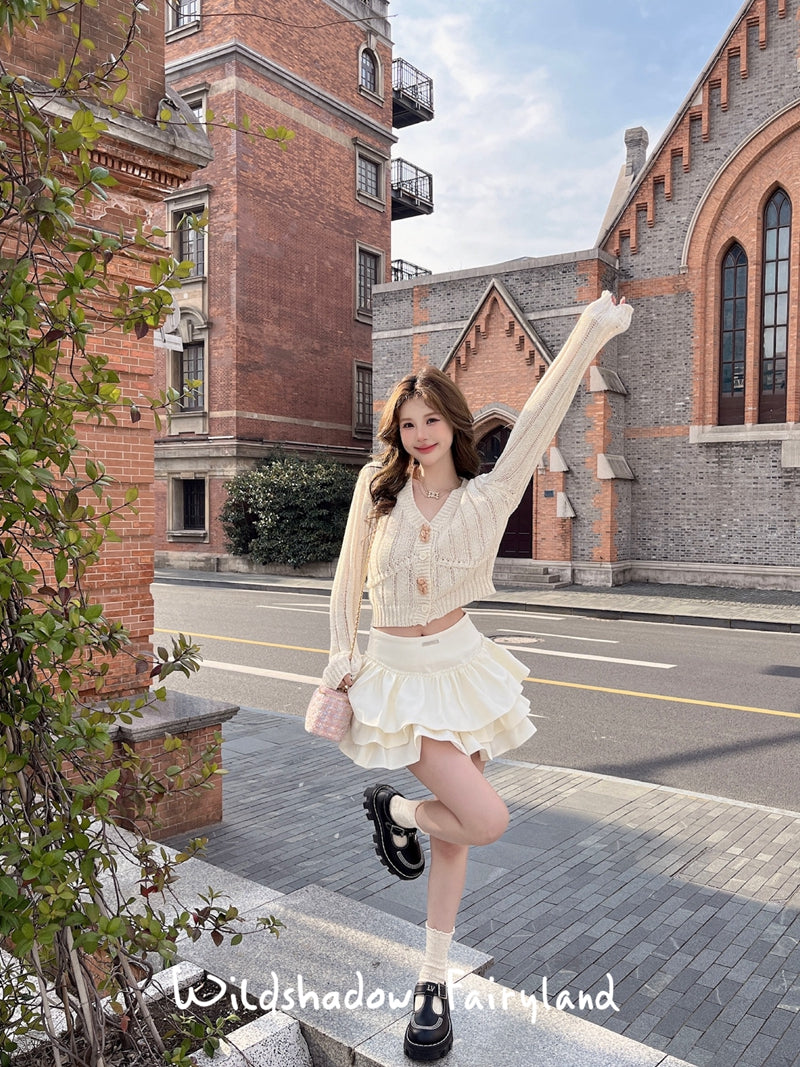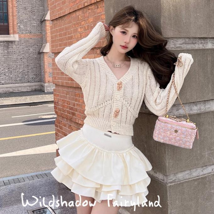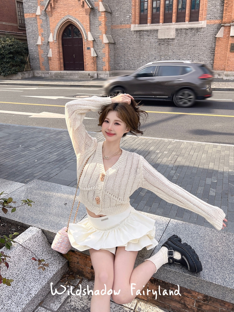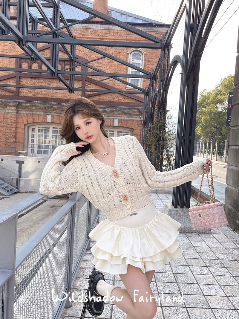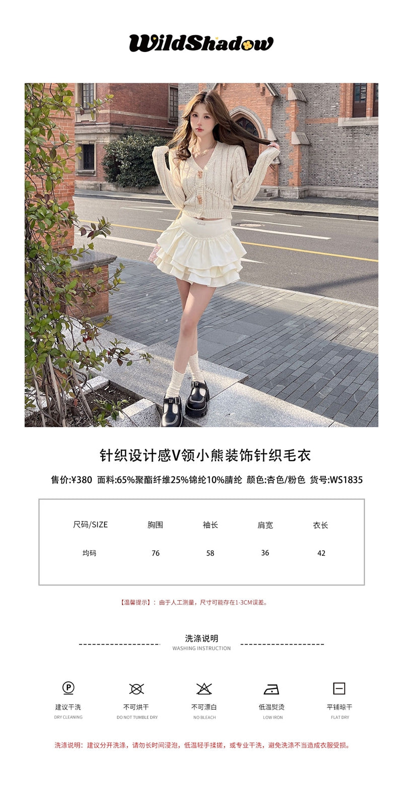 WILDSHADOW 2410 V领小熊装饰针织毛衣