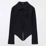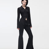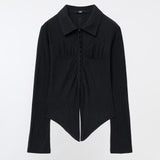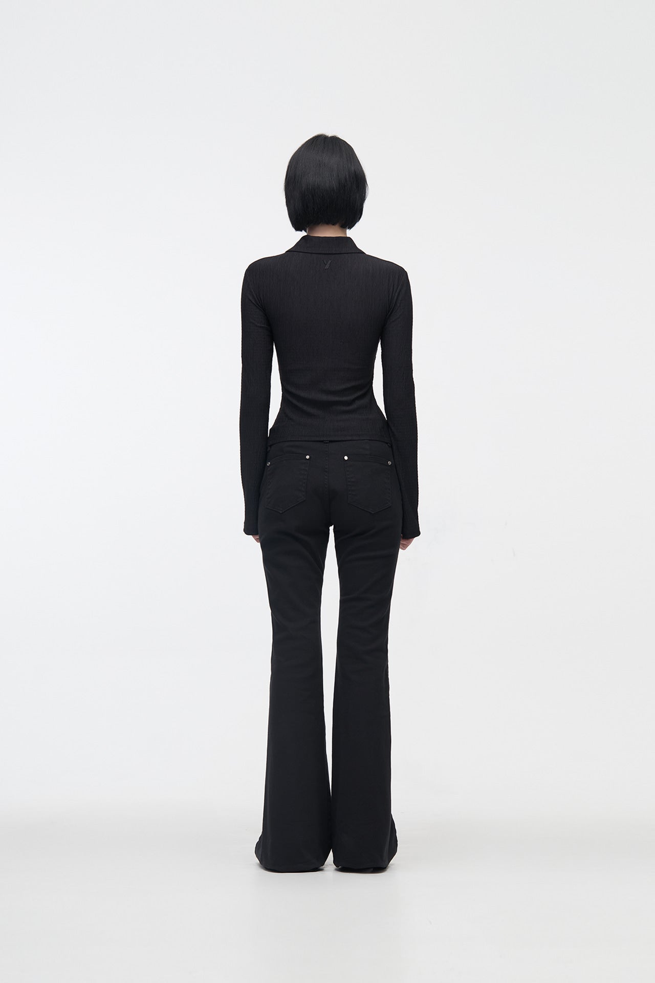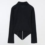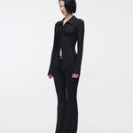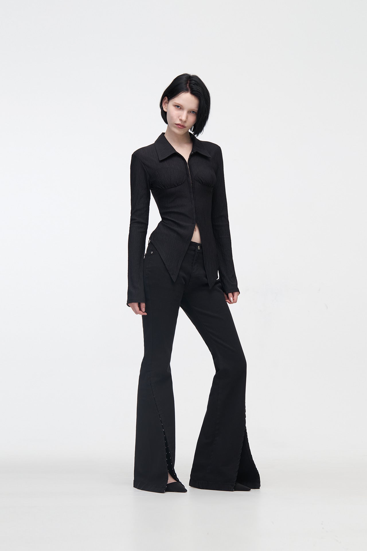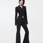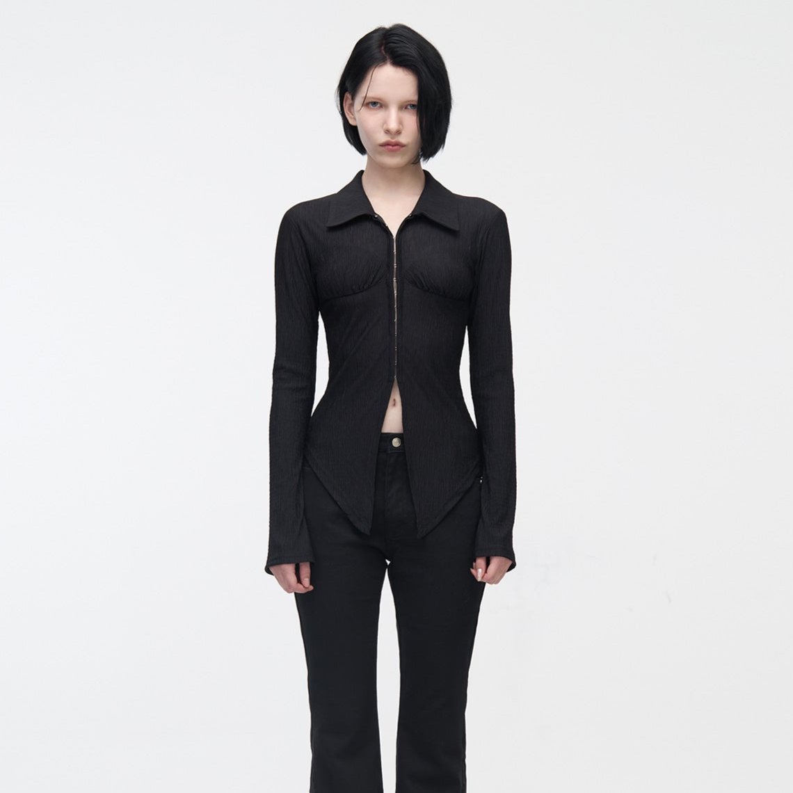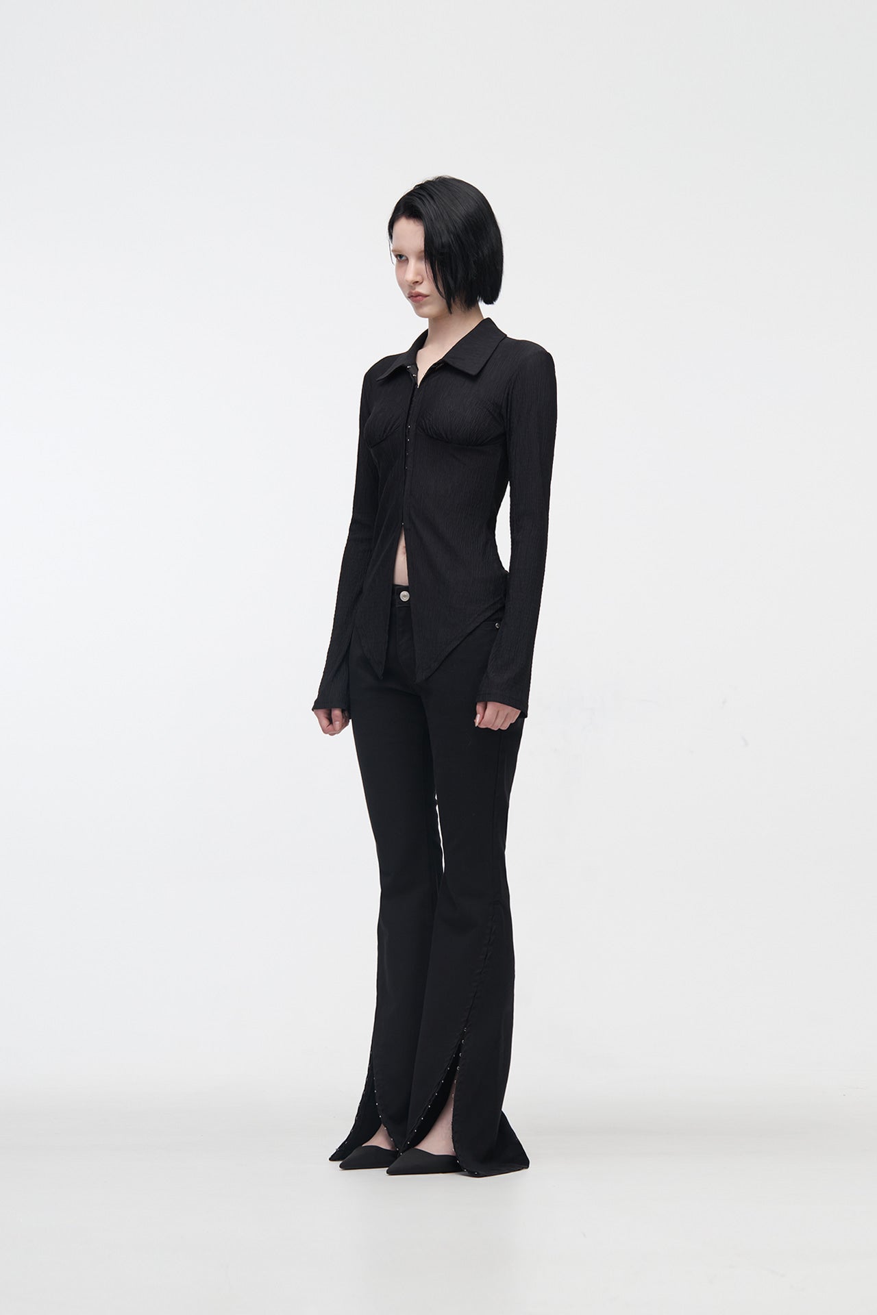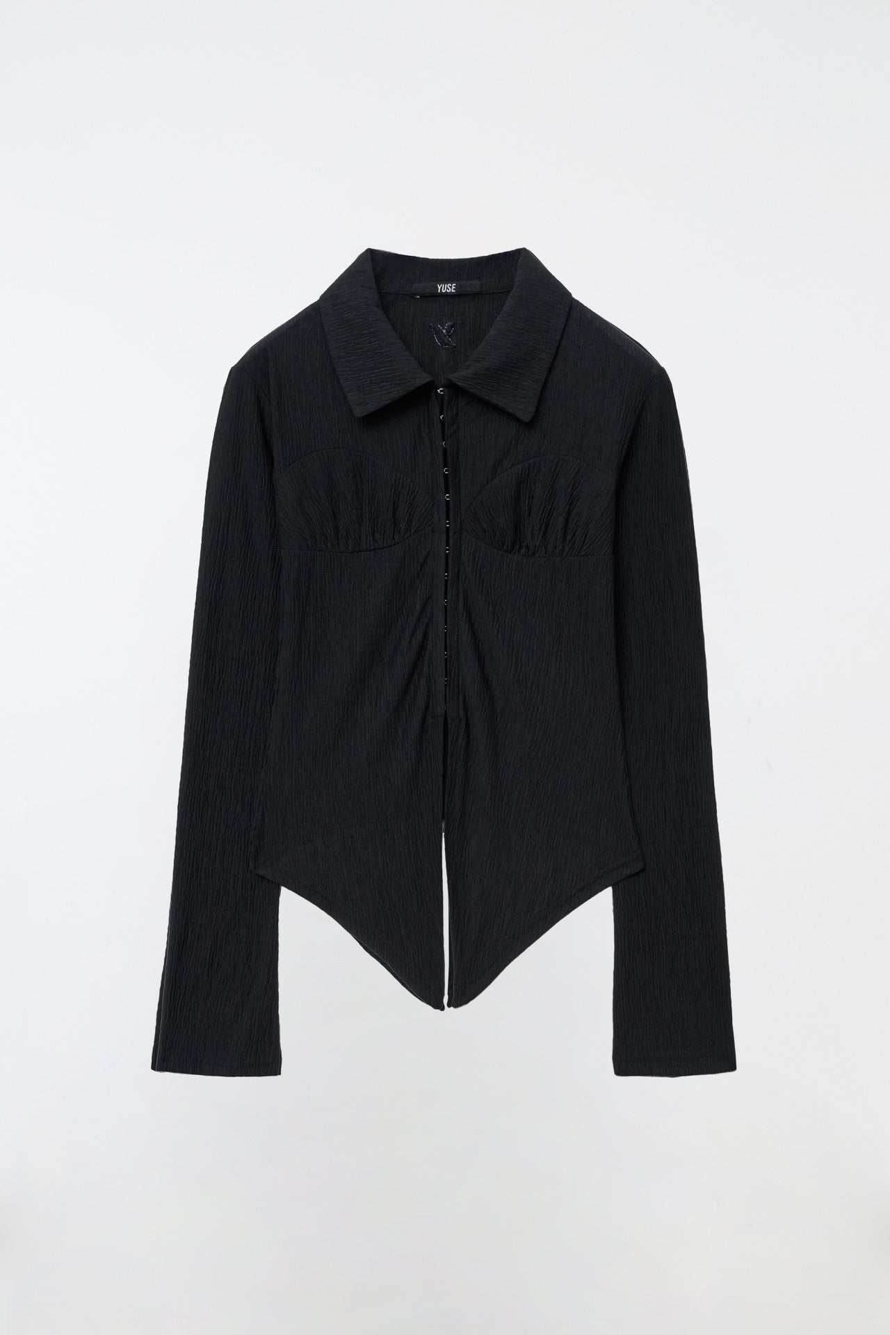 YUSE 2410 PLEATS SLIM HOOK CLOSING SHIRT - BLACK
